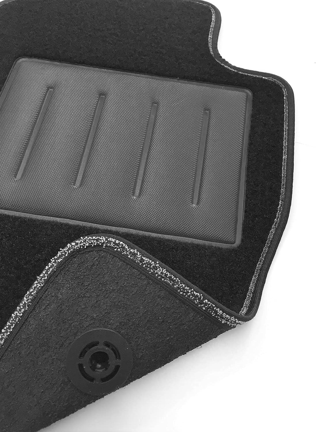 • Perfetta aderenza con l’utilizzo di bordo con velcro antiscivolo e bottoni per ancoraggio come da modello originale,tali dispositivi impediscono al tappeto di scivolare in avanti prevenendo pericolosi inconvenienti durante la guida