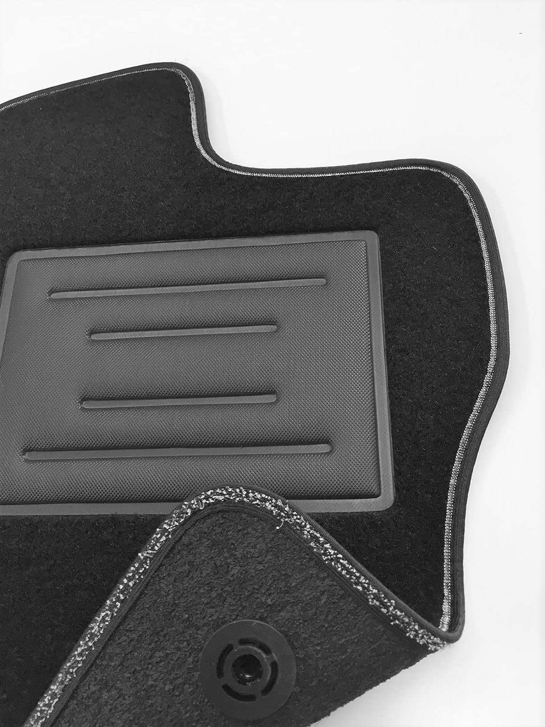 • Perfetta aderenza con l’utilizzo di bordo con velcro antiscivolo e bottoni per ancoraggio come da modello originale,tali dispositivi impediscono al tappeto di scivolare in avanti prevenendo pericolosi inconvenienti durante la guida