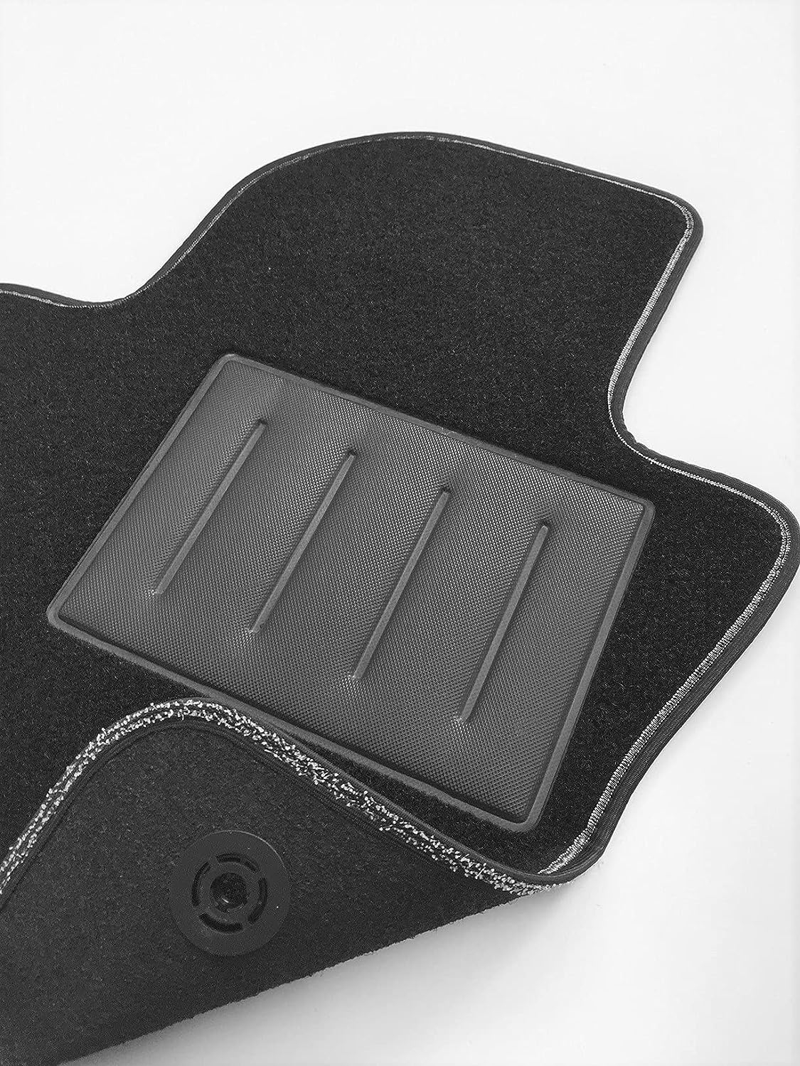 Perfetta aderenza con l’utilizzo di bordo con velcro antiscivolo e bottoni per ancoraggio come da modello originale,tali dispositivi impediscono al tappeto di scivolare in avanti prevenendo pericolosi inconvenienti durante la guida