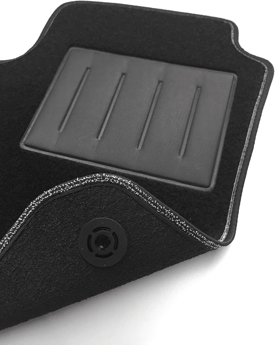 Perfetta aderenza con l’utilizzo di bordo con velcro antiscivolo e bottoni per ancoraggio sul tappeto anteriore lato guida come da modello originale,tali dispositivi impediscono al tappeto di scivolare in avanti prevenendo pericolosi inconvenienti durante la guida