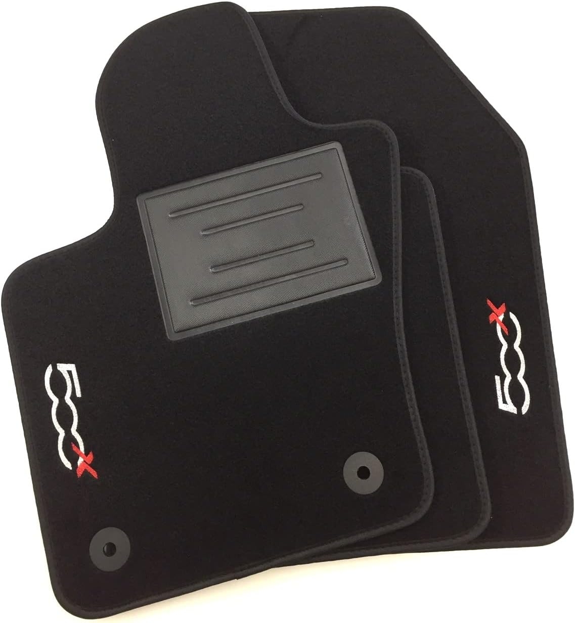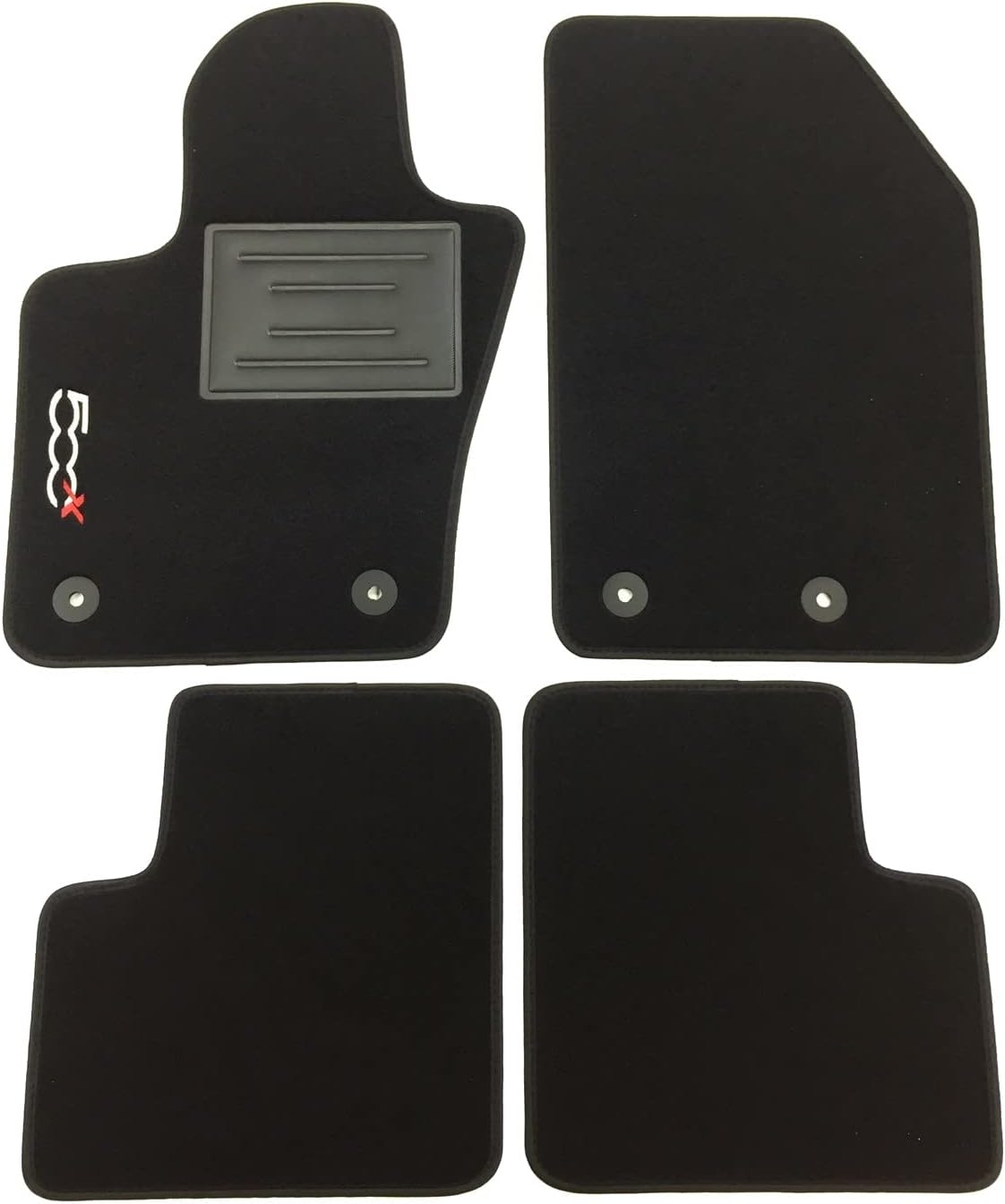 ASC Tappetini Auto Compatibili con Fiat 500X Cross-Lounge-Sport 2014-2024, Moquette, 2 Loghi Ricamati, Bordo Antiscivolo Nero, Bottoni e Battitacco